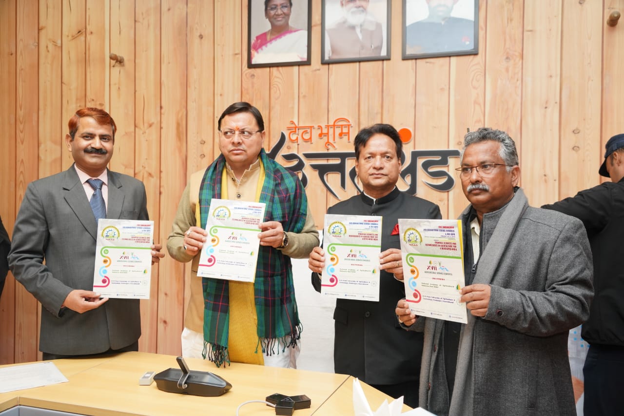 देहरादून – मुख्यमत्री पुष्कर सिंह धामी ने गुरूवार को मुख्यमंत्री आवास में 17वें कृषि विज्ञान सम्मेलन एवं कृषि प्रदर्शनी के ब्रोशर और पोस्टर का विमोचन किया। यह कृषि महाकुंभ 20 फरवरी से 22 फरवरी 2025 को गोविंद बल्लभ पंत कृषि एवं प्रौद्योगिकी विश्वविद्यालय, पंतनगर में प्रस्तावित है जो की राष्ट्रीय कृषि विज्ञान अकादमी एवं गोविंद बल्लभ पंत कृषि विश्वविद्यालय के द्वारा संयुक्त रूप आयोजित किया जा रहा है.