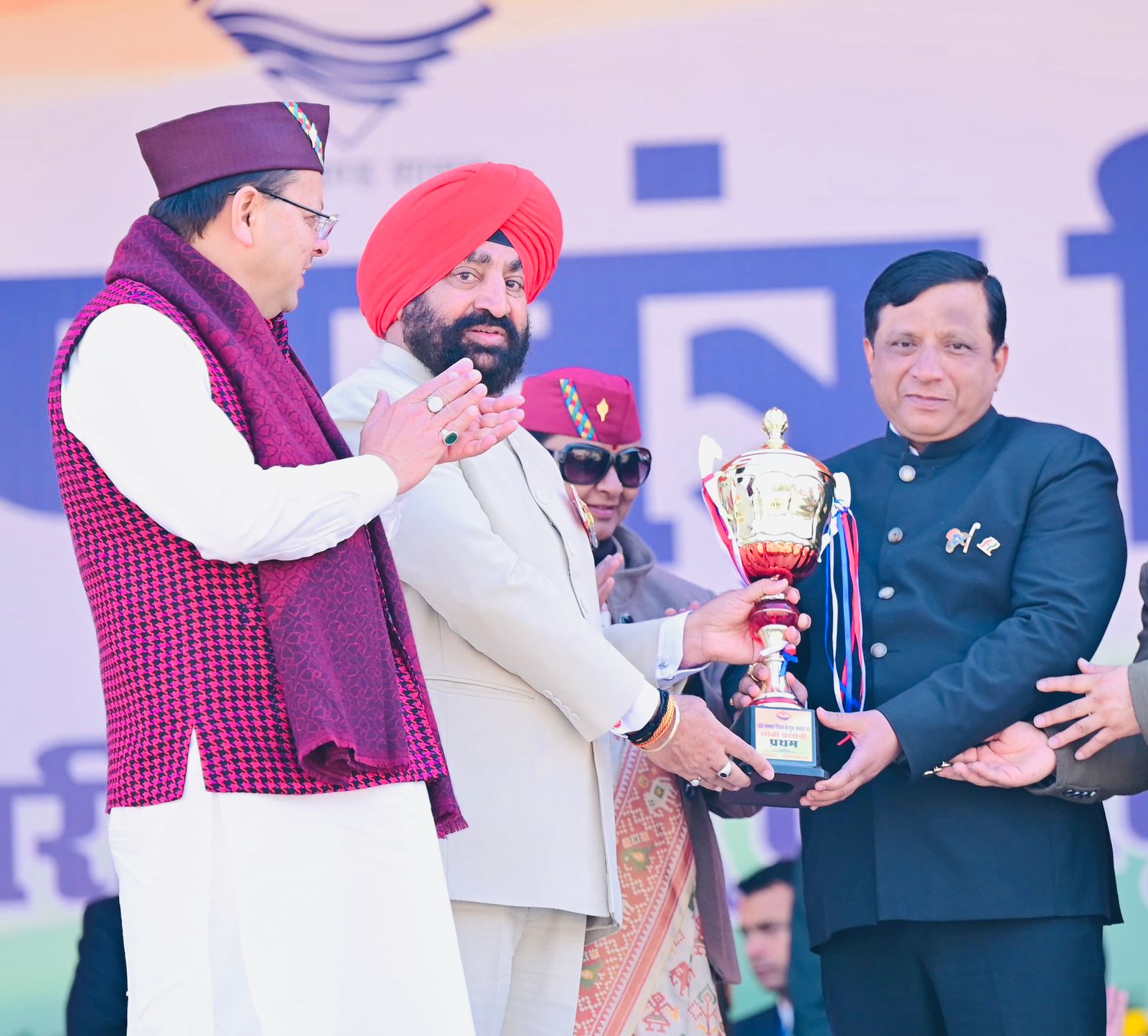 राज्यपाल लेफ्टिनेंट जनरल गुरमीत सिंह (से नि) और मुख्यमंत्री पुष्कर सिंह धामी ने सूचना विभाग की झांकी को प्रथम स्थान मिलने पर महानिदेशक सूचना बंशीधर तिवारी को पुरस्कार प्रदान किया।